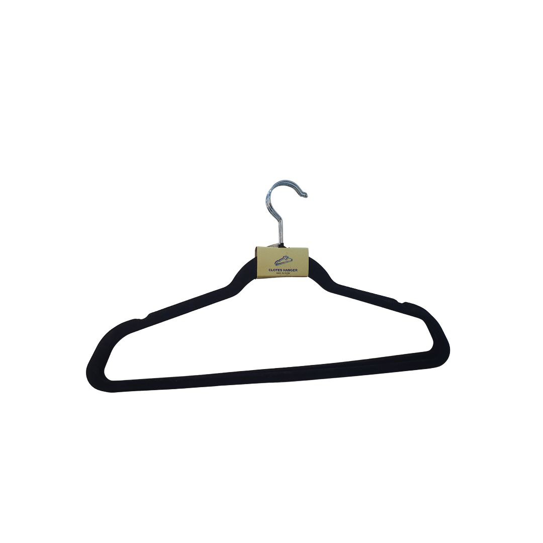 علاقة الملابس المصنوعة من البلاستيك الأسود مع خطاف معدني فضي تجمع بين المتانة والتصميم العصري. مثالية لتعليق مختلف أنواع الملابس بطريقة منظمة، سواء في المنزل أو في المتاجر.